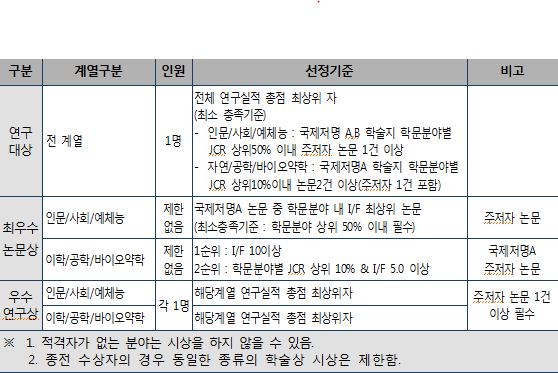 가. 우수 연구실적에 대한 시상을 통해 일반대학원생의 연구동기 부여