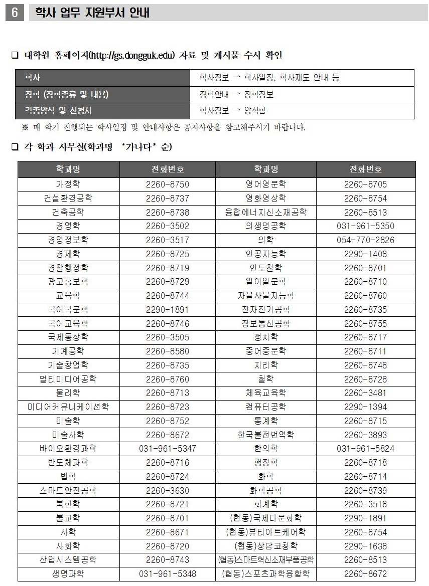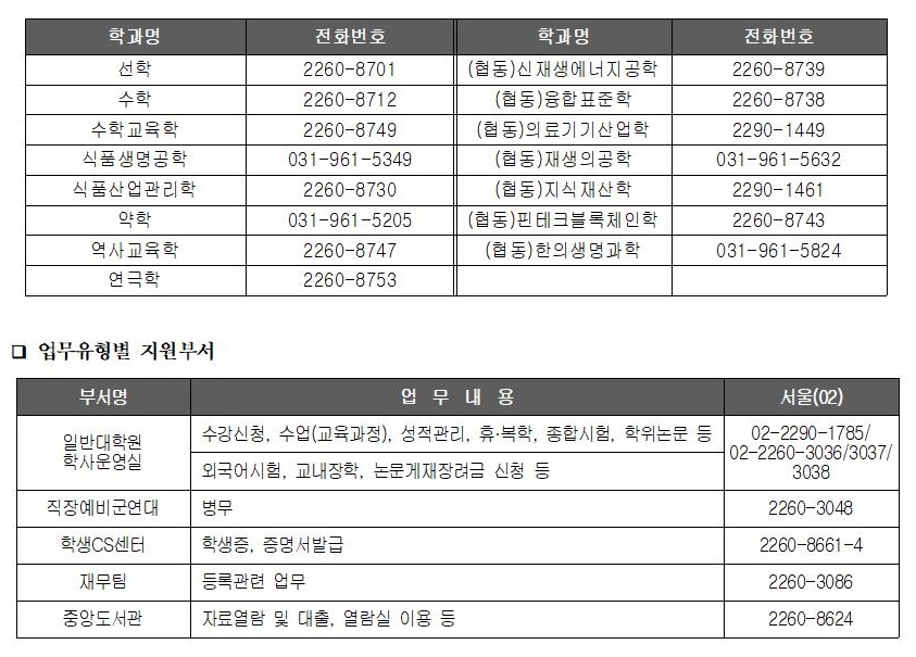 2020학년도 하계방학 중 일반대학원 학사운영실 근무시간 안내