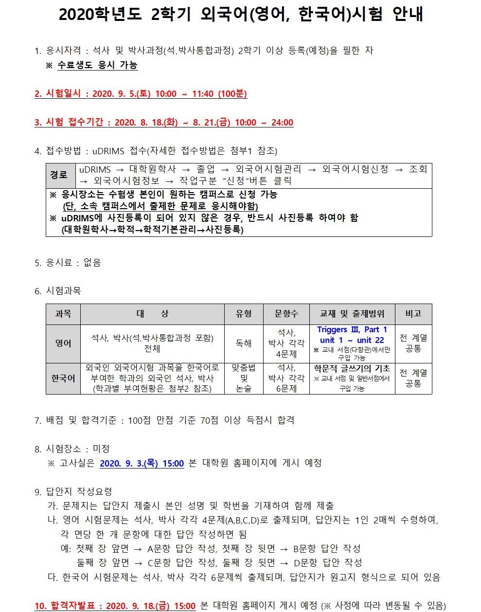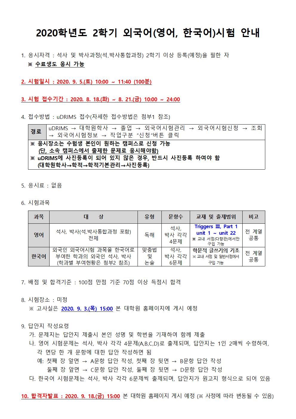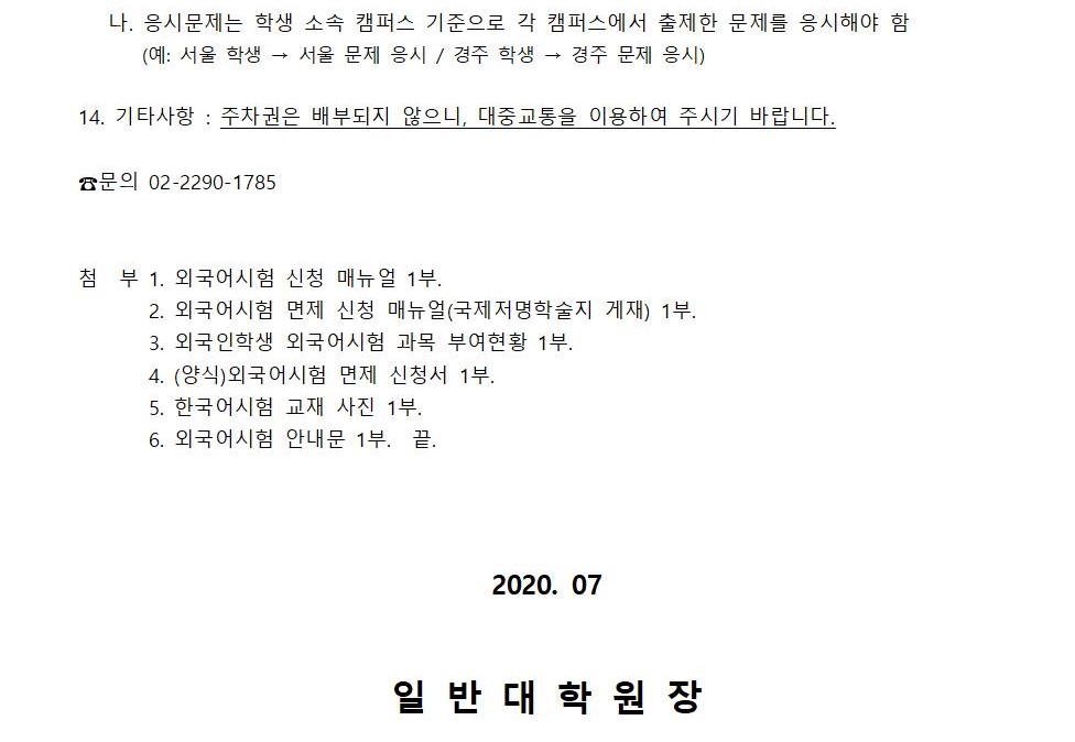 첨부파일 (양식)외국어시험 면제신청서.hwp 외국인학생 외국어시험 과목 부여현황.xlsx (매뉴얼)외국어시험 면제(학술지 게재) 신청.pdf (매뉴얼)외국어시험신청.pdf (붙임1)(공지)외국어시험안내.hwp