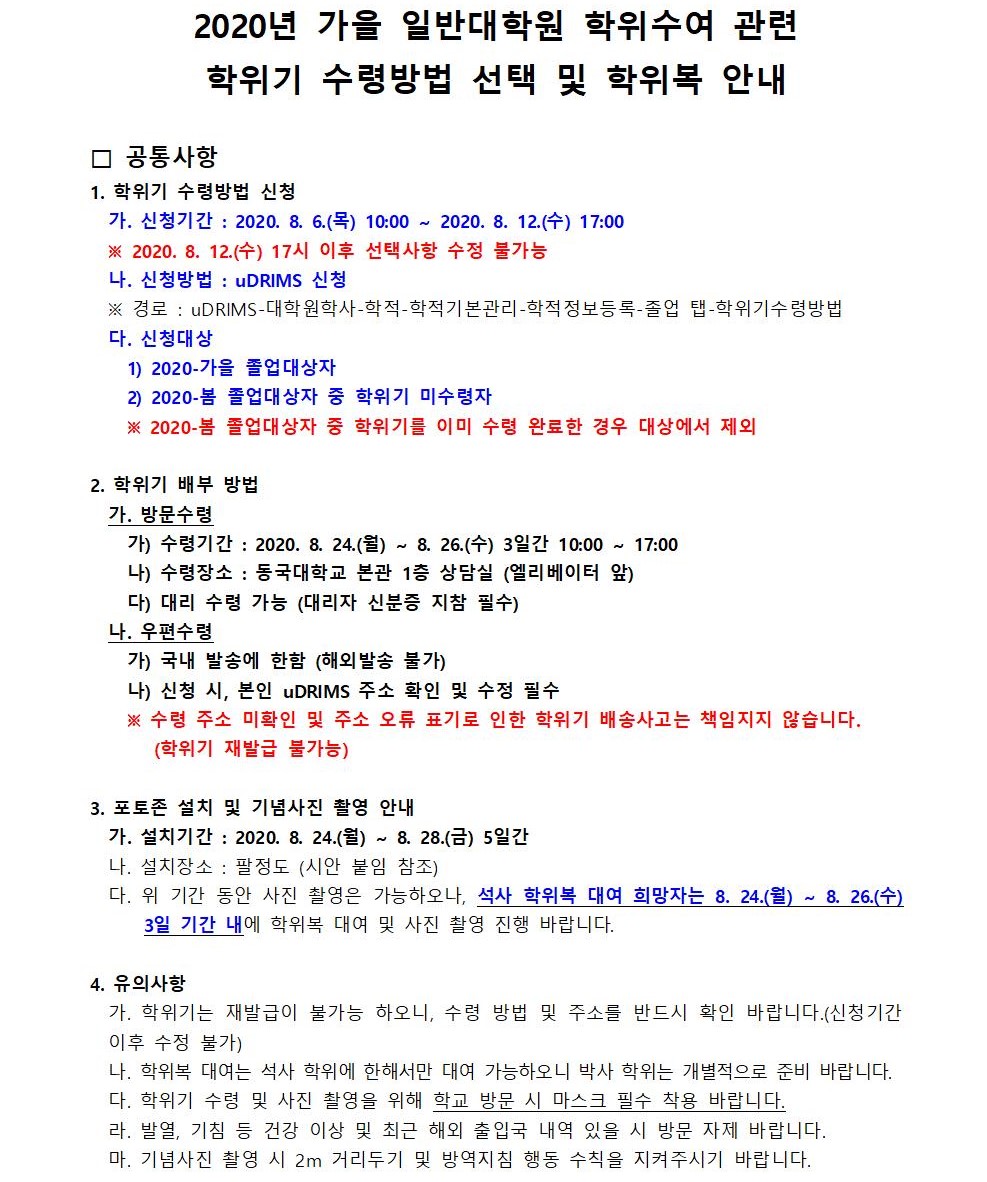 첨부파일 2. 2020년 가을 학위수여식 취소에 따른 포토존 설치(안).pptx 1. 2020년 가을 학위수여 관련 학위기 수령방법 선택 및 학위복 안내문.hwp