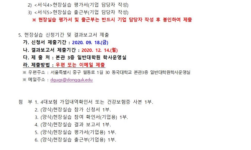 2020-2학기 일반대학원 현장실습 학점제 및 학기제 안내