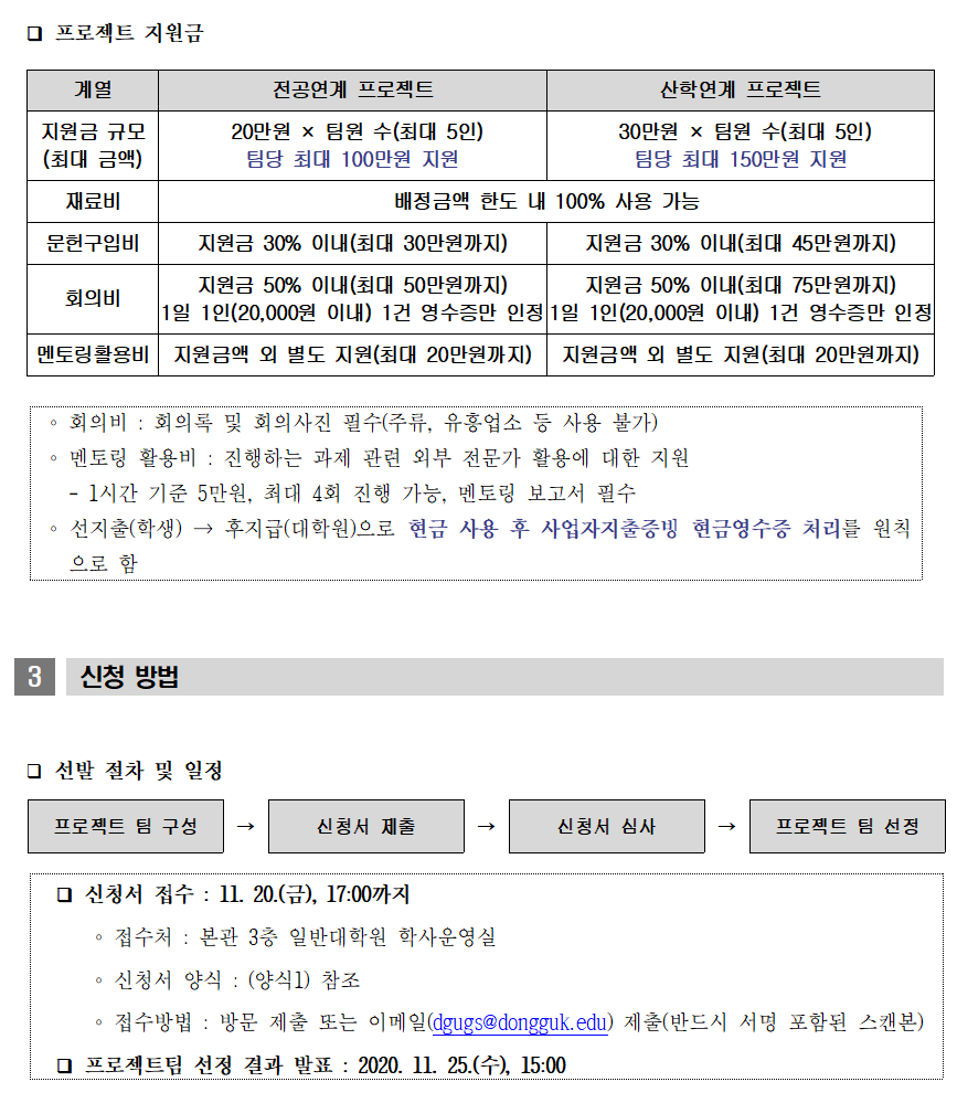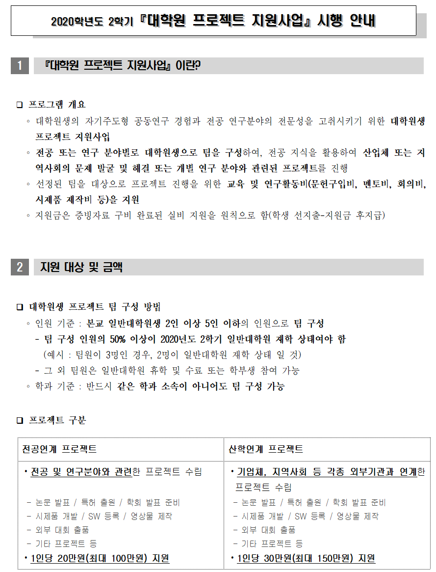 2020학년도 2학기 『대학원 프로젝트 지원사업』 시행 안내