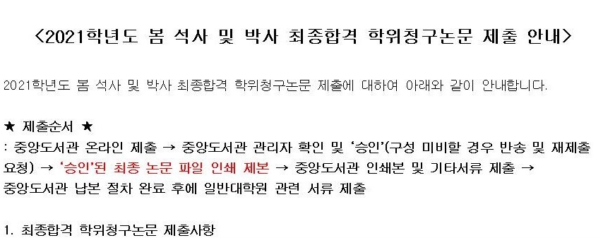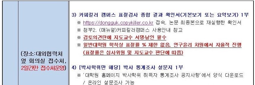 ☎ 일반대학원 제출 서류 관련 문의(일반대학원 학사운영실) : 02-2290-1785
