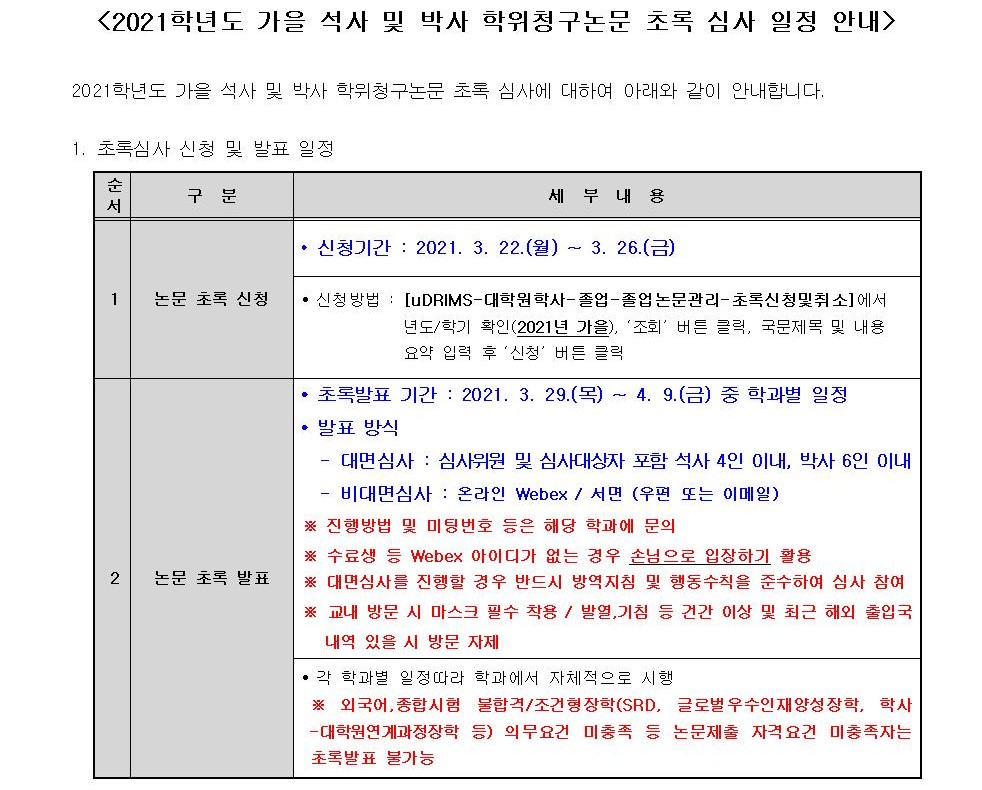 2021학년도 가을 학위청구논문 초록심사 안내