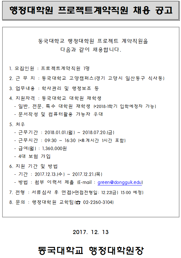 행정대학원 프로젝트계약직원 채용 공고