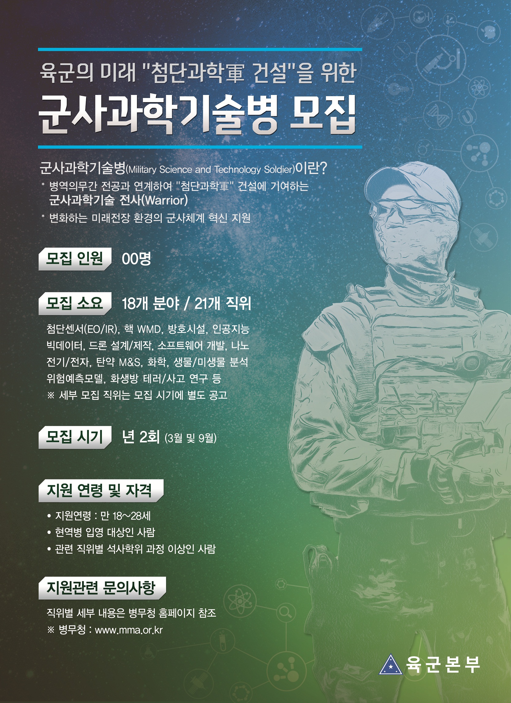 군사과학기술병 모집 안내하오니 참고하시길 바랍니다.