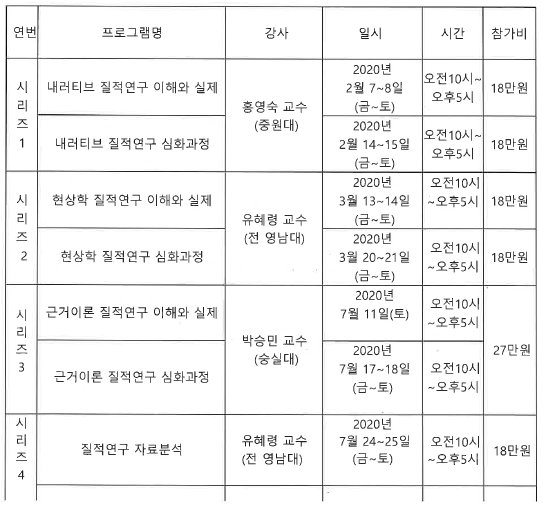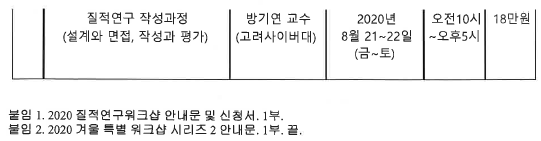 2020년 질적연구를 위한 논문작성법 워크샵 및 겨울방학 특강 안내