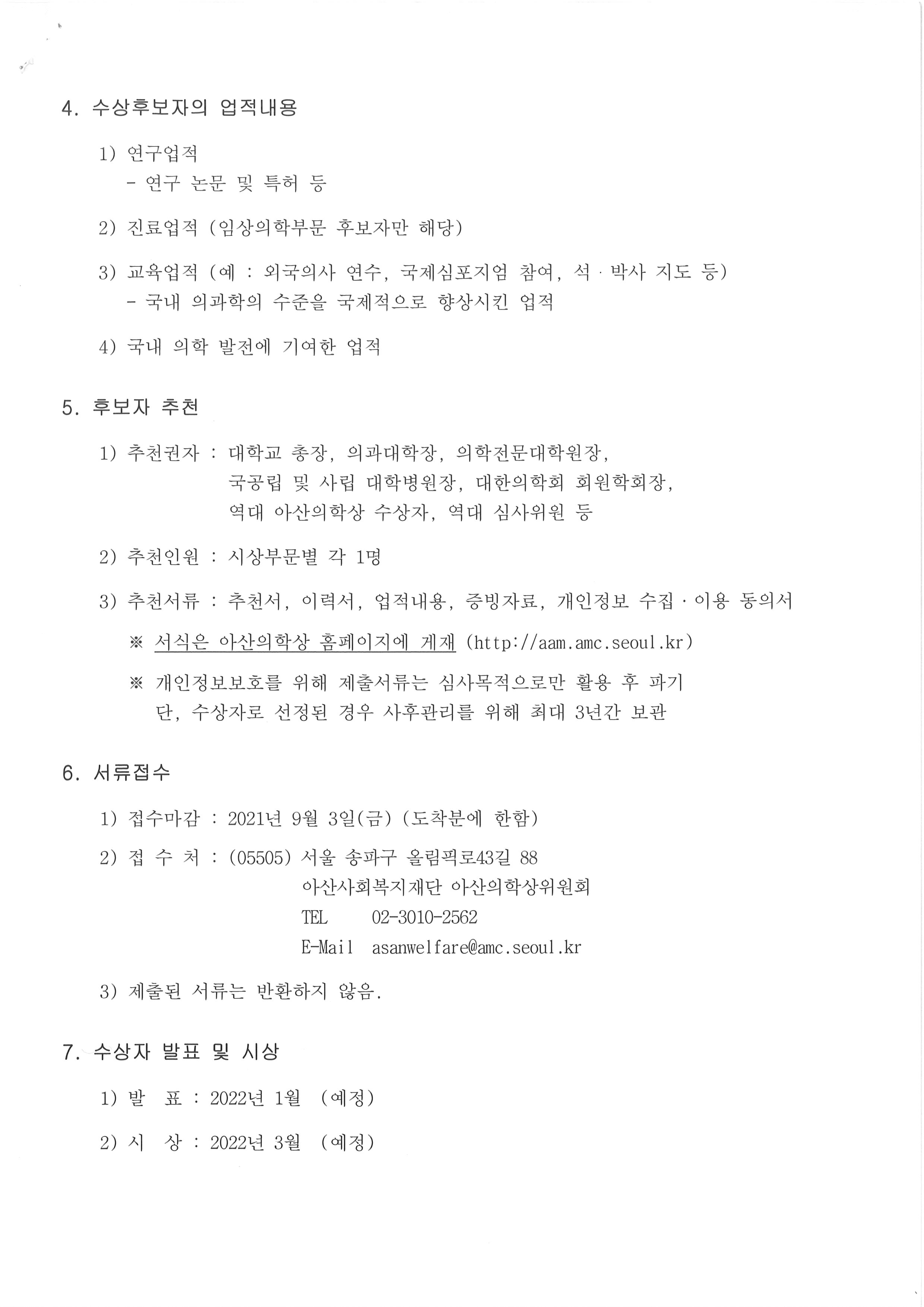 [~9.3] 제15회 아산의학상 수상후보자 추천 안내