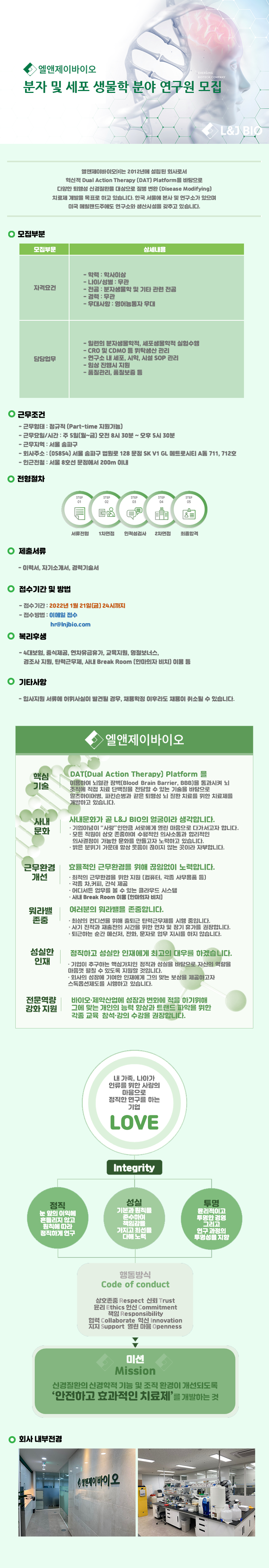 [~1.21] 엘앤제이바이오 연구원 채용공고
